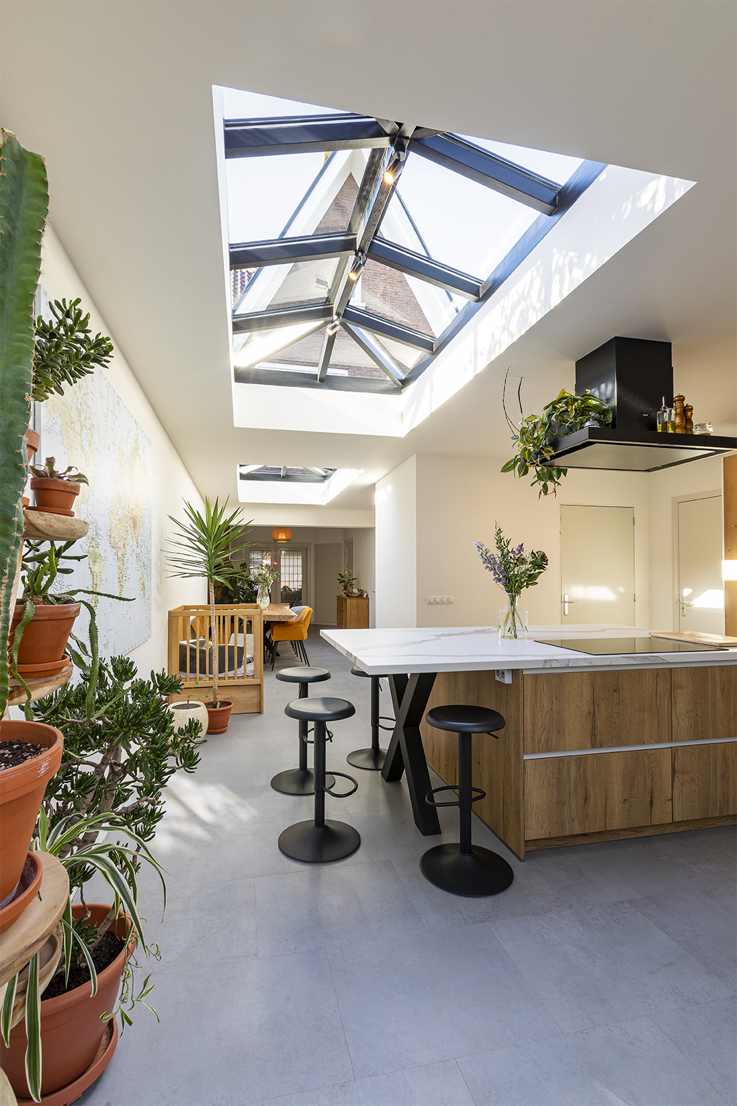 Denk ook aan de positie van de lichtstraat. Bedenk vooraf goed waar de lichtstraat extra licht moet brengen. Wil je de lichtstraat centraal in het dak plaatsen omdat dit het mooiste is? Als je bijvoorbeeld meer licht in de naastgelegen ruimte wilt hebben, positioneer de lichtstraat dan meer deze richting in of maak de lichtstraat groter.