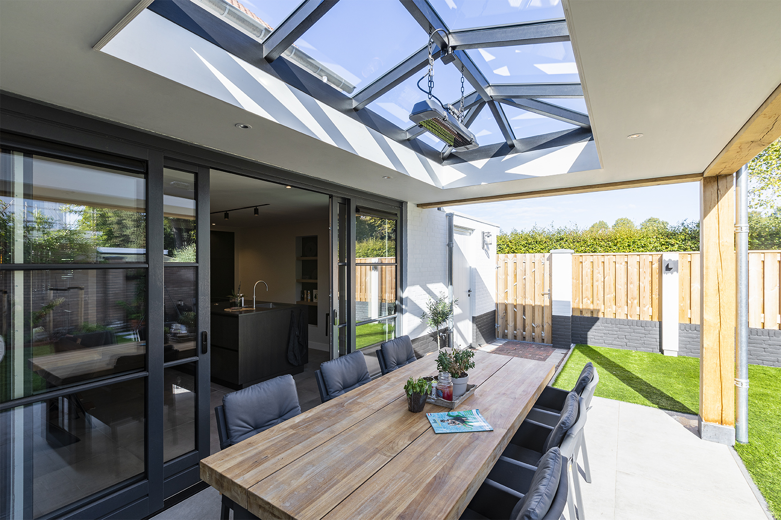 Voor een overkapping is 44.2 enkele beglazing meestal voldoende. Wil je de warmte weren of wil je de ruimte later betrekken bij je woning? Kies dan voor hoog rendement isolatieglas met eventueel warmtewerende functie.